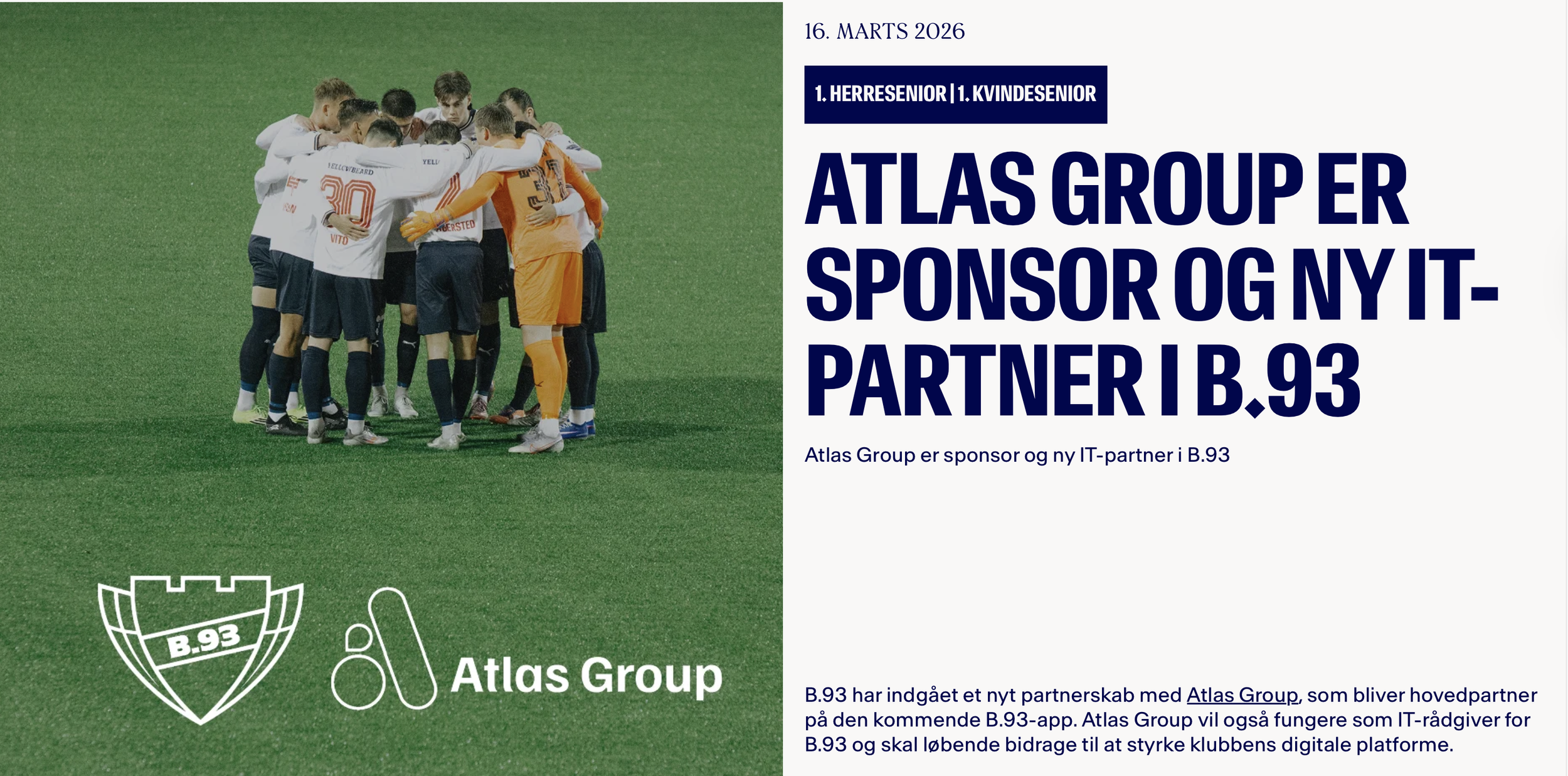 Nyheder: Atlas er sponsor for B.93